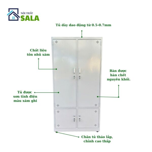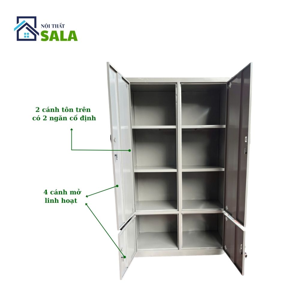 Nội Thất SALA giới thiệu sản phẩm TỦ SẮT 4 CÁNH TÔN MỞ, giải pháp tối ưu giúp lưu trữ hồ sơ, tài liệu hoặc vật dụng cá nhân một cách ngăn nắp, hiện đại và tiết kiệm không gian.