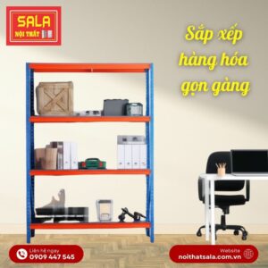 – Kệ gồm 3 tầng mâm, 2 khoang để hàng, ghép liền, có 4 chân trụ.