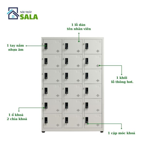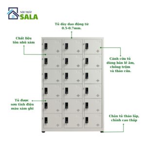 Giới thiệu sản phẩm tủ locker sắt 18 ngăn