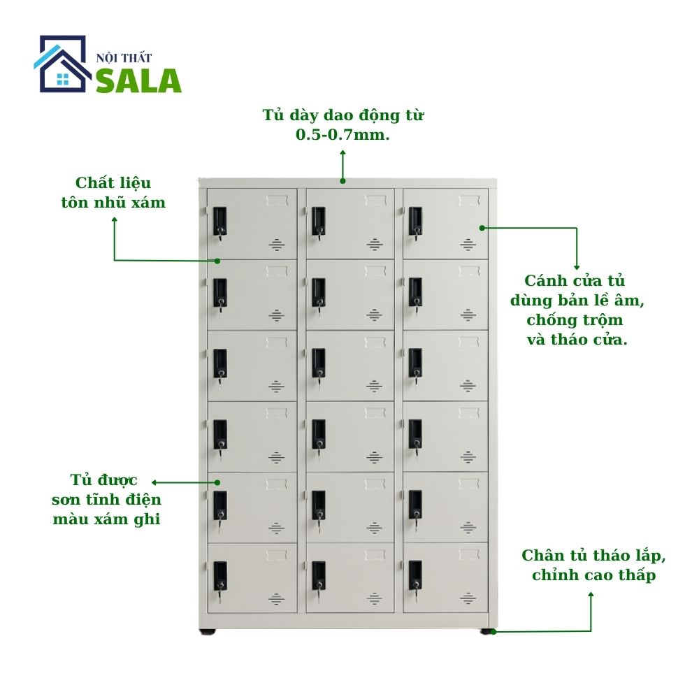 Tủ locker sắt 18 ngăn là dòng sản phẩm chuyên dụng cho nhu cầu lưu trữ cá nhân tại các khu vực có mật độ người sử dụng cao như văn phòng, trường học, bệnh viện, nhà máy, phòng gym, siêu thị… Với thiết kế hiện đại, tối ưu không gian và độ bền cao, tủ locker sắt 18 ngăn đang là lựa chọn hàng đầu cho các doanh nghiệp và tổ chức hiện nay.
