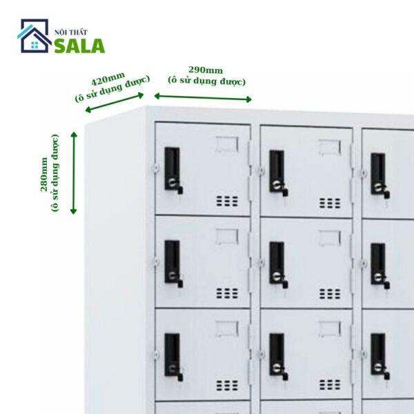 Khóa: Mỗi ngăn được trang bị khóa riêng biệt (khóa cơ, khóa số hoặc khóa điện tử)