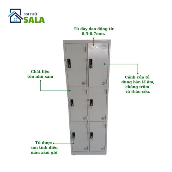 – Chất liệu tủ sử dụng là tôn nhũ xám, tủ dày dao động từ 0.5-0.7mm.