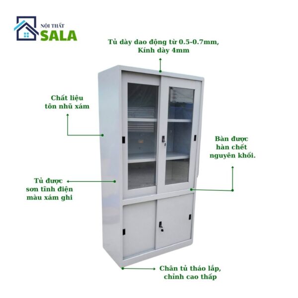 • Tên sản phẩm: Tủ sắt 2 cánh lùa kính 2 cánh lùa tôn