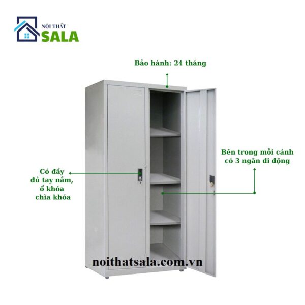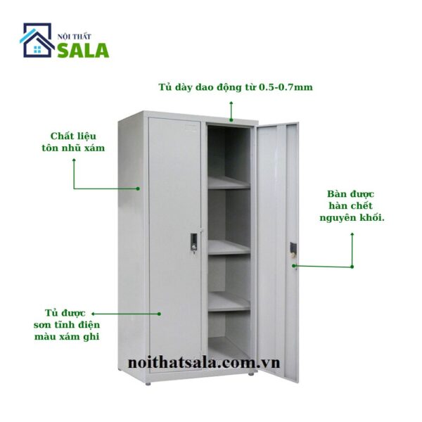 🔹 Thông số kỹ thuật tủ sắt 2 cánh tôn mở SALA: